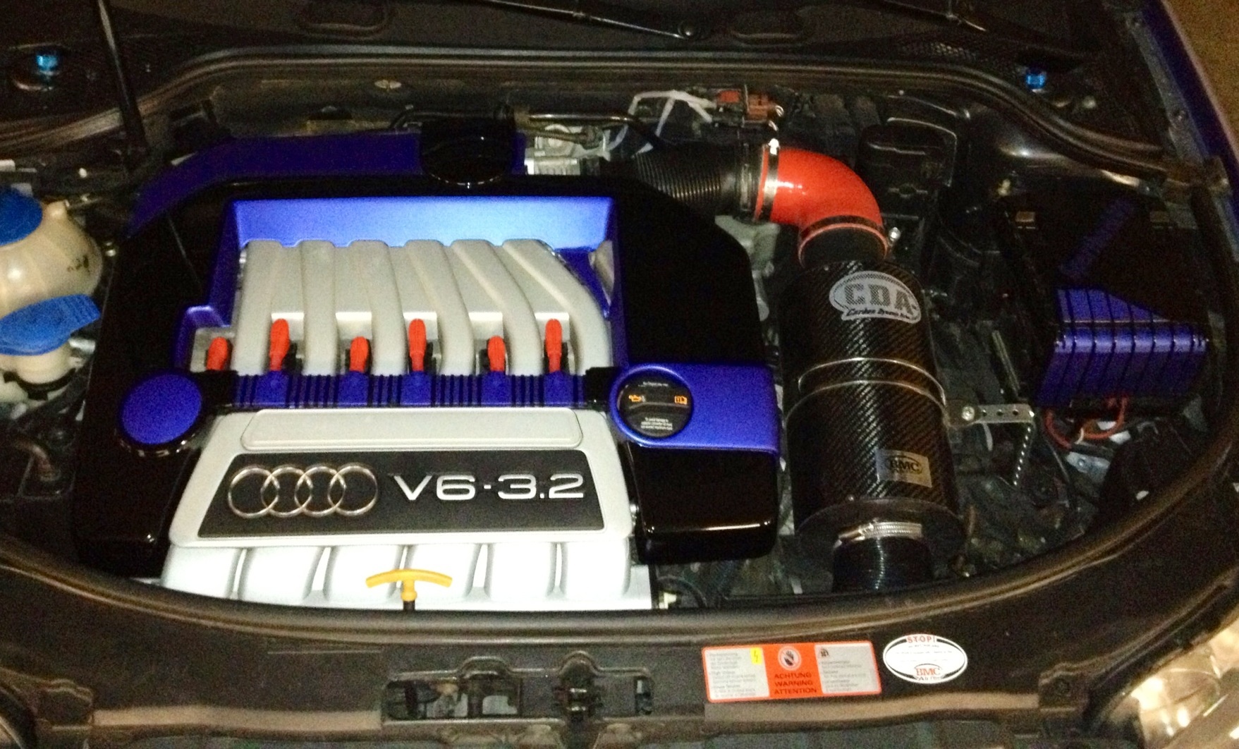 Die Zündkerzentecker vom Passat R36 mit blauen Wellrohr sollten ganz gut dazu passen, hab ich auch und kostet nicht die Welt. Hatte bei ebay mal set ersteigert für 10€
